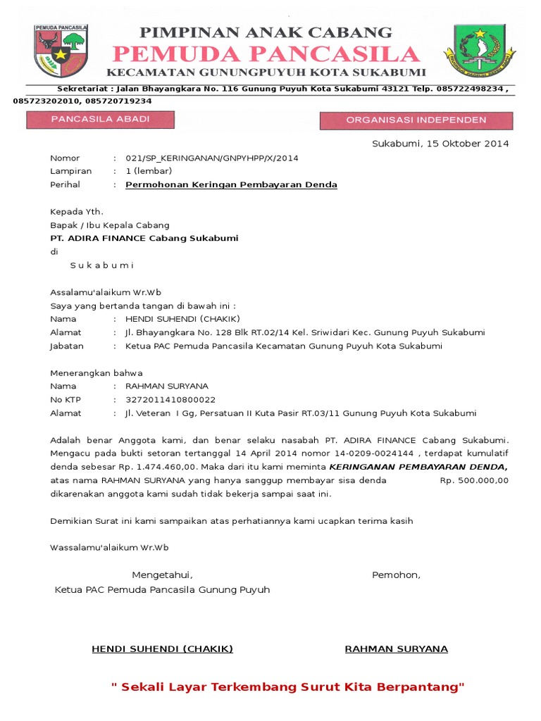 Surat Permohonan Pengurangan Pinalty Pdf